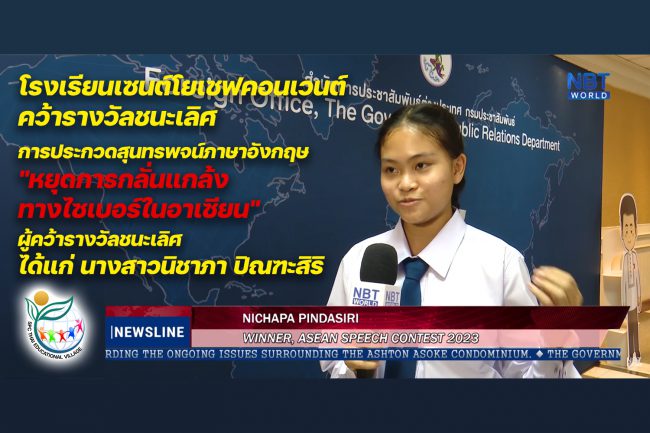 โรงเรียนเซนต์โยเซฟคอนเวนต์ คว้ารางวัลชนะเลิศ การประกวดสุนทรพจน์ภาษาอังกฤษ “หยุดการกลั่นแกล้งทางไซเบอร์ในอาเซียน”