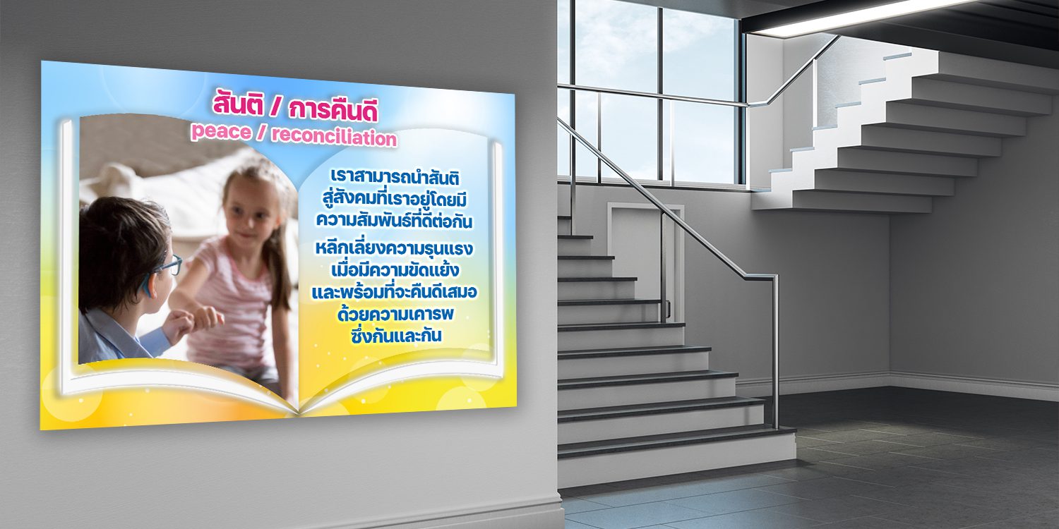 สำหรับบอร์ดทั้ง 20 ชุดนี้ เน้นบริบทในความเป็นโรงเรียน ที่มีส่วนเกี่ยวกับ “ครอบครัว” นักเรียน ผู้ปกครอง คุณครู บุคลากรทุกฝ่ายในโรงเรียน …. หากข่าวดี ในทางศาสนาคือ ข่าวดีแห่งความรอดพ้นจากบาป และสารความจริงอันประเสริฐ