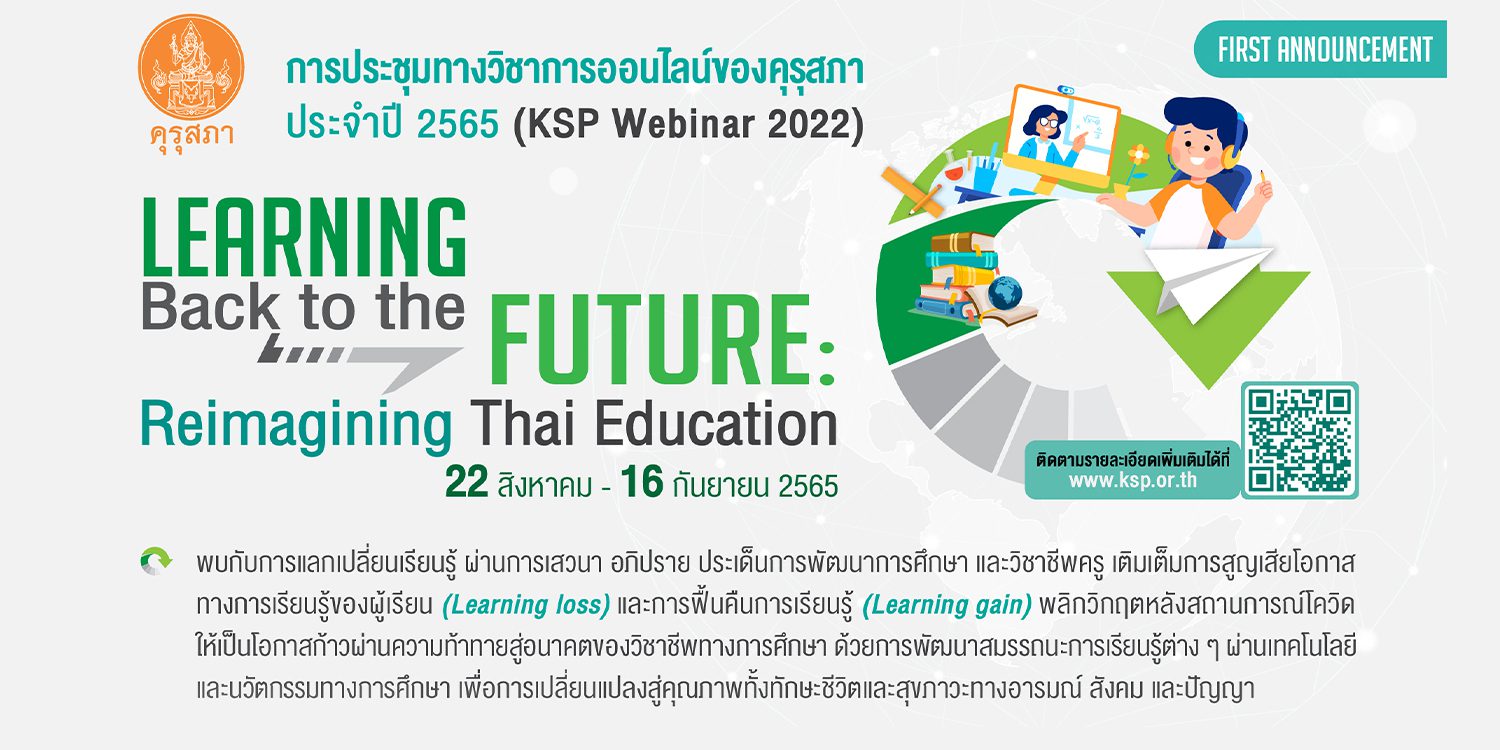 เลขาธิการคุรุสภา กล่าวต่อไปว่า การประชุมทางวิชาการออนไลน์ของคุรุสภา ประจำปี 2565 (KSP Webinar 2022) กำหนดจัดขึ้นภายใต้หัวข้อ “Learning Back to the Future: Reimagining Thai Education”เนื่องมาจากการเล็งเห็นถึงการพัฒนาการศึกษาและวิชาชีพครู เติมเต็มการสูญเสียโอกาสทางการเรียนรู้ของผู้เรียน (Learning Loss) และการฟื้นคืนการเรียนรู้ (Learning Gain) พลิกวิกฤตหลังสถานการณ์โควิดให้เป็นโอกาส ก้าวผ่านความท้าทายสู่อนาคตของวิชาชีพทางการศึกษา ด้วยการพัฒนาสมรรถนะการเรียนรู้ต่างๆ ผ่านเทคโนโลยีและนวัตกรรมทางการศึกษา เพื่อการเปลี่ยนแปลงสู่คุณภาพทั้งทักษะชีวิตและสุขภาวะทางอารมณ์ สังคม และปัญญา ซึ่งการจัดการประชุมทางวิชาการของคุรุสภาฯ ในครั้งนี้ จะนำไปสู่ความร่วมมือร่วมกันสร้างสรรค์ความก้าวหน้าในการพัฒนางานด้านการศึกษา การพัฒนาวิชาชีพ ที่มีคุณภาพที่ทันสมัยและเป็นปัจจุบัน