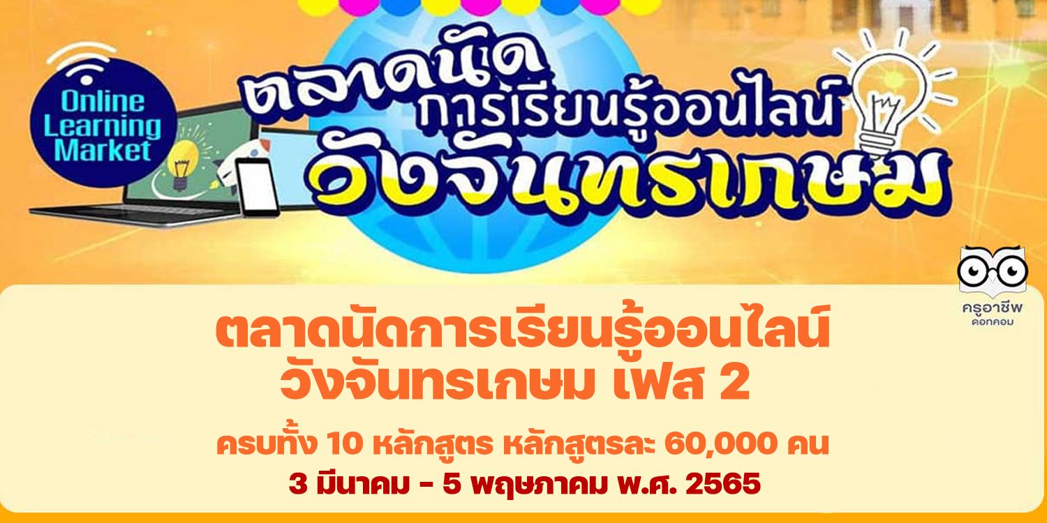 เปิดรับสมัครอบรม ตลาดนัดการเรียนรู้ออนไลน์วังจันทรเกษม เฟส 2 ครบทั้ง 10 หลักสูตร หลักสูตรละ 60,000 คน เพื่อรองรับความต้องการครูทั่วประเทศ http://moemarket.moe.go.th